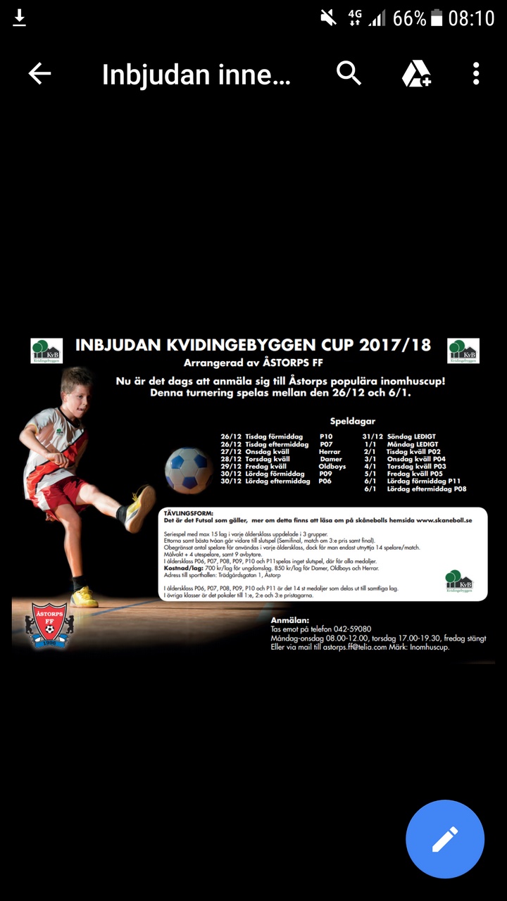 Jag har anmält 08-laget för inomhuscup i Åstorp i januari. Se bifogad bild för infornation.
